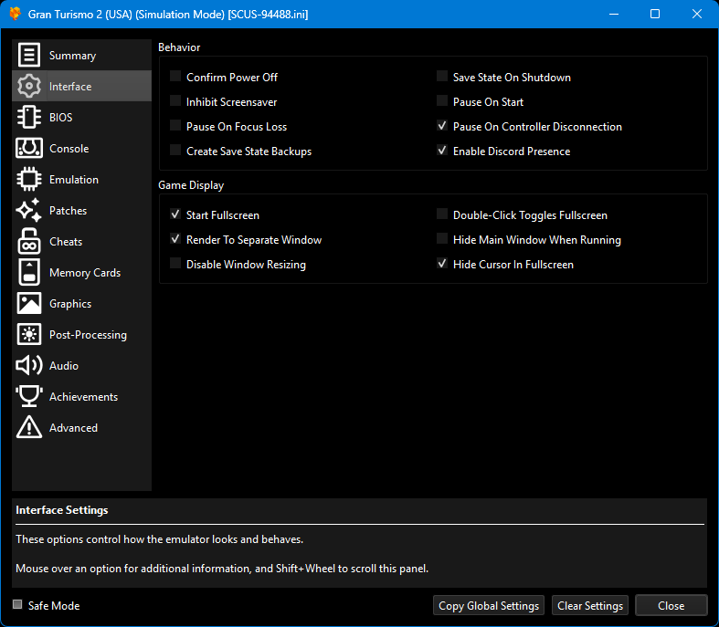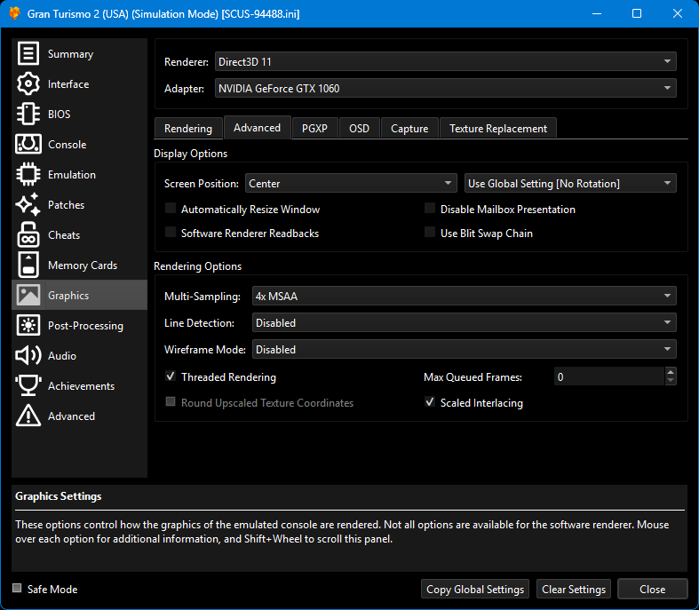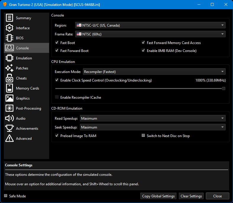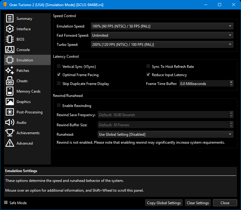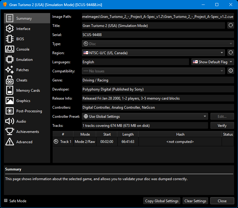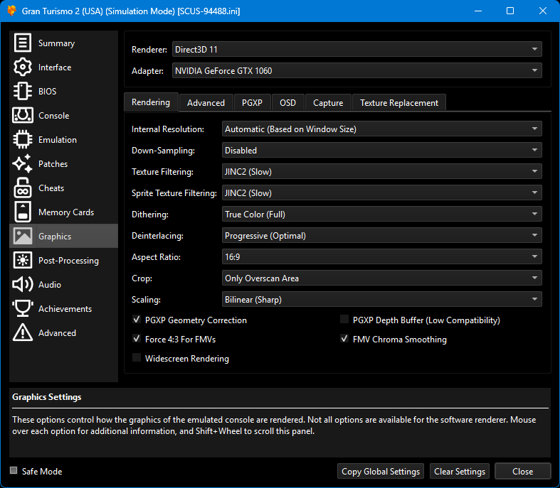 DuckStation Settings for Gran Turismo 2 (PS1 Emulator)