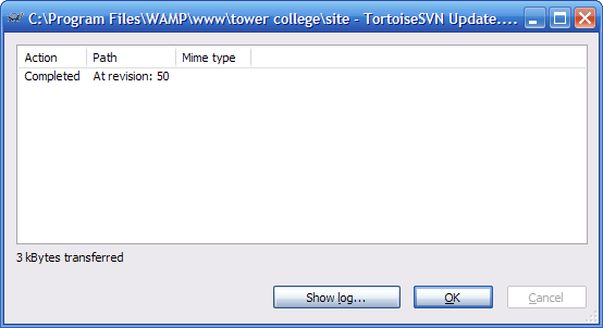 A Show log... button becomes visible, too. This should be Show Log... because:
